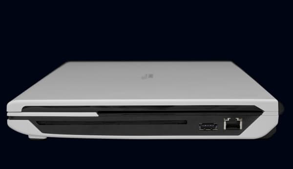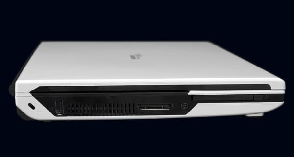 На левом боку расположены: один вертикальный порт USB, далее идет вентиляционная решетка, дальше — как раз проприетарный разъем AMD для подключения внешней видеокарты, дальше — порт FireWire, и, наконец, слот Expresscard.