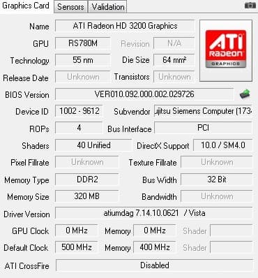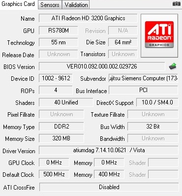 | Видео | Графическое решение ATI Radeon™ HD 3200 (разделяемая память) | ATI Radeon HD 3200 Graphics (320 MB) |