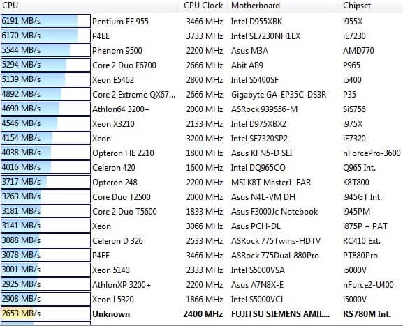 Производительность процессора измеряется в семи тестах утилиты Everest.
