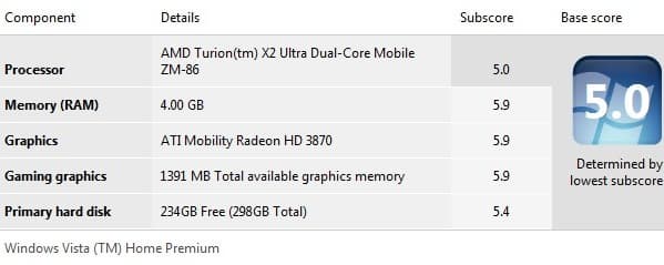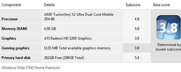 Посмотрим, насколько изменилась производительность, измеренная встроенным тестом Windows Vista. Напомним, у SA 3650 она выглядела так.