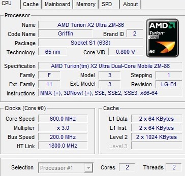 | Процессор | AMD next-generation dual-core mobile processor technology | Turion X2 Ultra Mobile ZM-86, 2400 MHz |