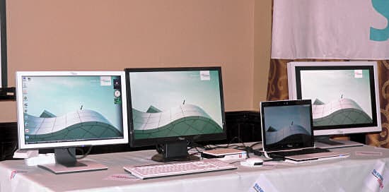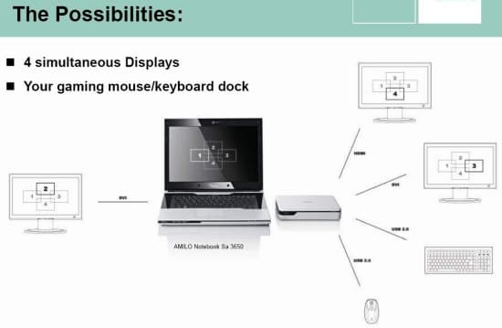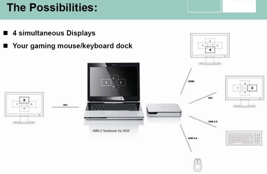 Fujitsu-Siemens подчеркивает возможность по выводу изображения на четыре монитора одновременно.