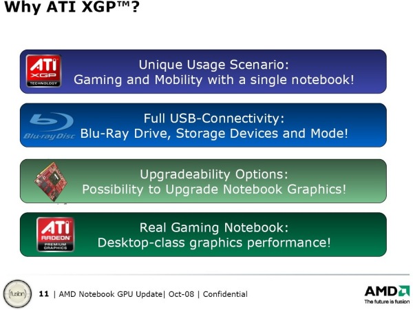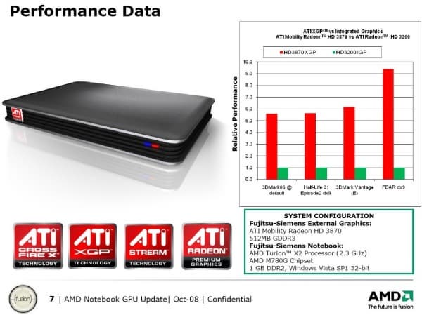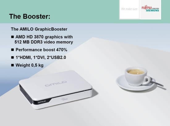 11 декабря 2008 года компании AMD и Fujitsu-Siemens Computers провели презентацию нового уникального продукта: внешней видеокарты для ноутбуков.