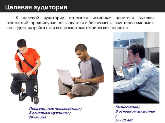 Основной портрет потребителя: либо активный пользователь, либо клерк. Видимо, предполагается, что будет набрано максимальное количество функций и возможностей — и свалено в кучу. А пользователь, купив устройство, уже сам выберет, что ему нужно. Представленный на презентации ролик как раз очень хорошо иллюстрирует этот подход — функции свалены в кашу в стиле «он может настолько много, что вам больше ничего не понадобится», и преподнесено все это пользователю настолько быстро, что даже ведущий мероприятия после окончания ролика спросил: «Непонятно? Мне тоже».