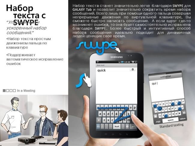 Технология Swype позволяет быстрее набирать на виртуальной клавиатуре. Подробнее расскажу о ней в обзоре, если он состоится (хотя в том, что планшет будет предоставлен на тестирование, есть некоторые сомнения).