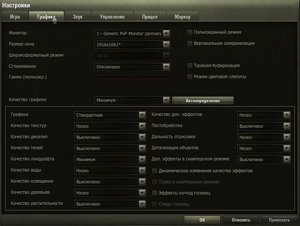 Далее мы приводим настройки игры на максимальное и минимальное качество.