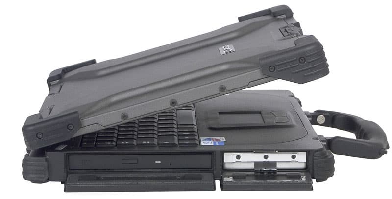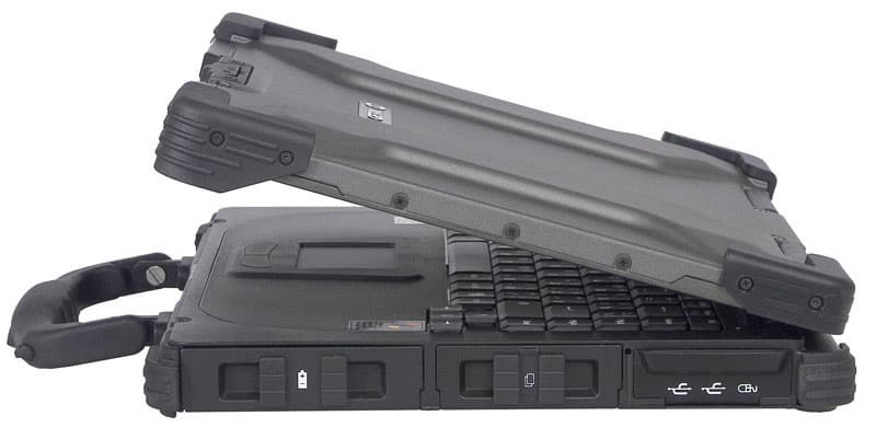 Выглядит ноутбук очень эффектно. В каком-нибудь полуфантастическом шпионском боевике типа Mission Impossible N+1 он выглядел бы вполне органично. Корпус производит ощущение надежности и солидности. Все разъемы закрыты резиновыми заглушками, сменные устройства — крышками с уплотнением.