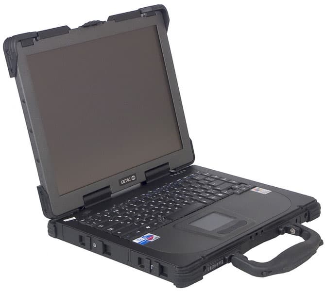 В настоящее время компьютерная техника востребована, пожалуй, во всех областях жизнедеятельности человечества. Естественно, помощь компьютера не помешала бы и при работе в условиях, мягко говоря, некомфортных. В помощь различным аварийным службам, научным экспедициям, армии, да и просто любителям экстрима создаются защищенные (rugged) ноутбуки. С защищенным ноутбуком от Panasonic наши читатели уже познакомились. Сегодня мы представляем вашему вниманию продукцию одного из наиболее известных производителей защищенных ноутбуков — компании Mitac, продающей их под торговой маркой Getac. Модель Getac M 220 сертифицирована на соответствие как военным (810F, 461E), так и промышленным (IP54) стандартам по защите от внешних воздействий. Условия, в которых может работать ноутбук, приведены на сайте производителя. При этом Getac M220 представляет собой достаточно современный компьютер, в чем можно убедиться, взглянув на его спецификацию.
