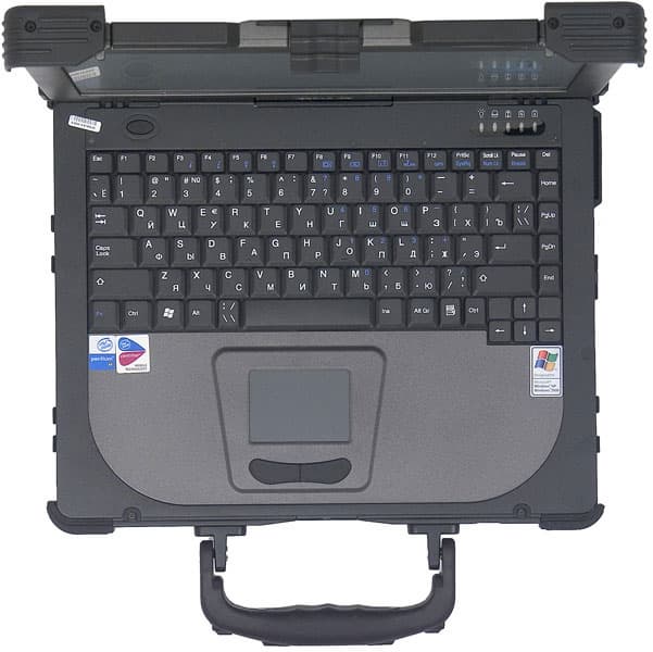 Стоит отметить, что разработчики уделили внимание не только обеспечению работоспособности ноутбука в экстремальных условиях, но и защите обрабатываемой информации от чужих глаз. В компьютере реализовано полное шифрование жесткого диска (включая boot sector) на уровне BIOS. Опция шифрования должна быть установлена ПЕРЕД форматированием диска.