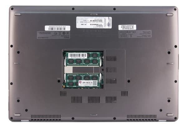 Как видите, память устанавливается в слоты, их здесь два, и оба они заняты. Чтобы установить жесткий диск, придется разбирать корпус.