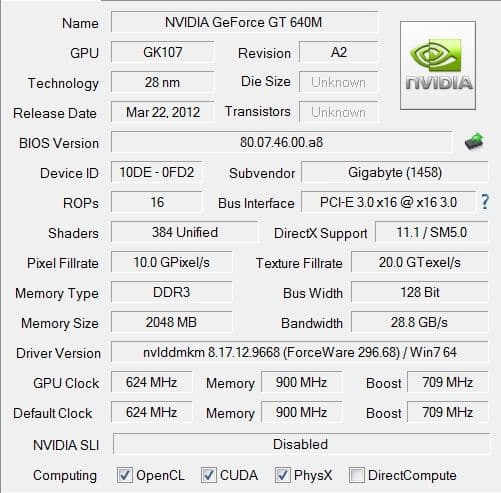 Еще интереснее с видеоподсистемой: в Gigabyte U2442n стоит довольно производительный адаптер NVIDIA 640M. Жаль, что не 650М, который побыстрее и вплотную подбирается к игровой серии GTX. Впрочем, между собой они отличаются только частотами (а также ценой и уровнем нагрева).