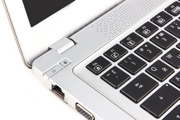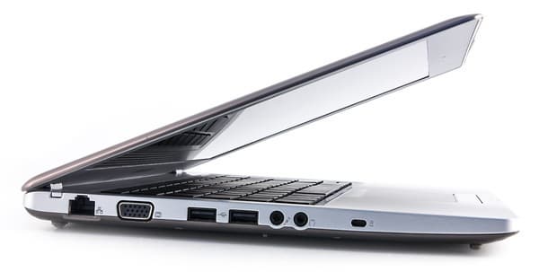 Здесь расположен порт LAN, выход VGA, два порта USB 2.0, микрофонный вход и выход на наушники, а также порт для кенсингтонского замка.