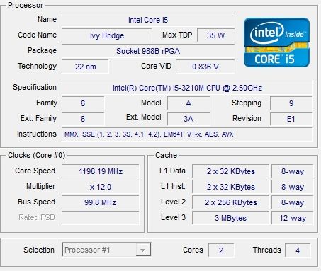 | Процессор | Процессор 3-го поколения Intel Core i5-3210M (2,5—3,1 ГГц) | ||