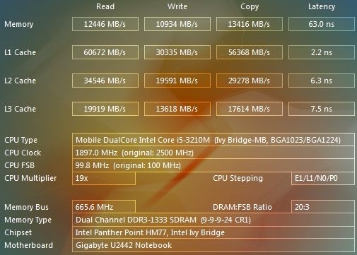 Итого, по уровню производительности Gigabyte U2442n находится на очень хорошем уровне. Заметно более высокий уровень производительности среди мобильных систем могут показать только Core i7, но они потребляют очень много энергии и требуют больших систем охлаждения, так что в компактные ноутбуки их не поставишь. Так что этот уровень производительности — практически максимум того, что можно получить при правильном балансе скорости и портативности ноутбука.