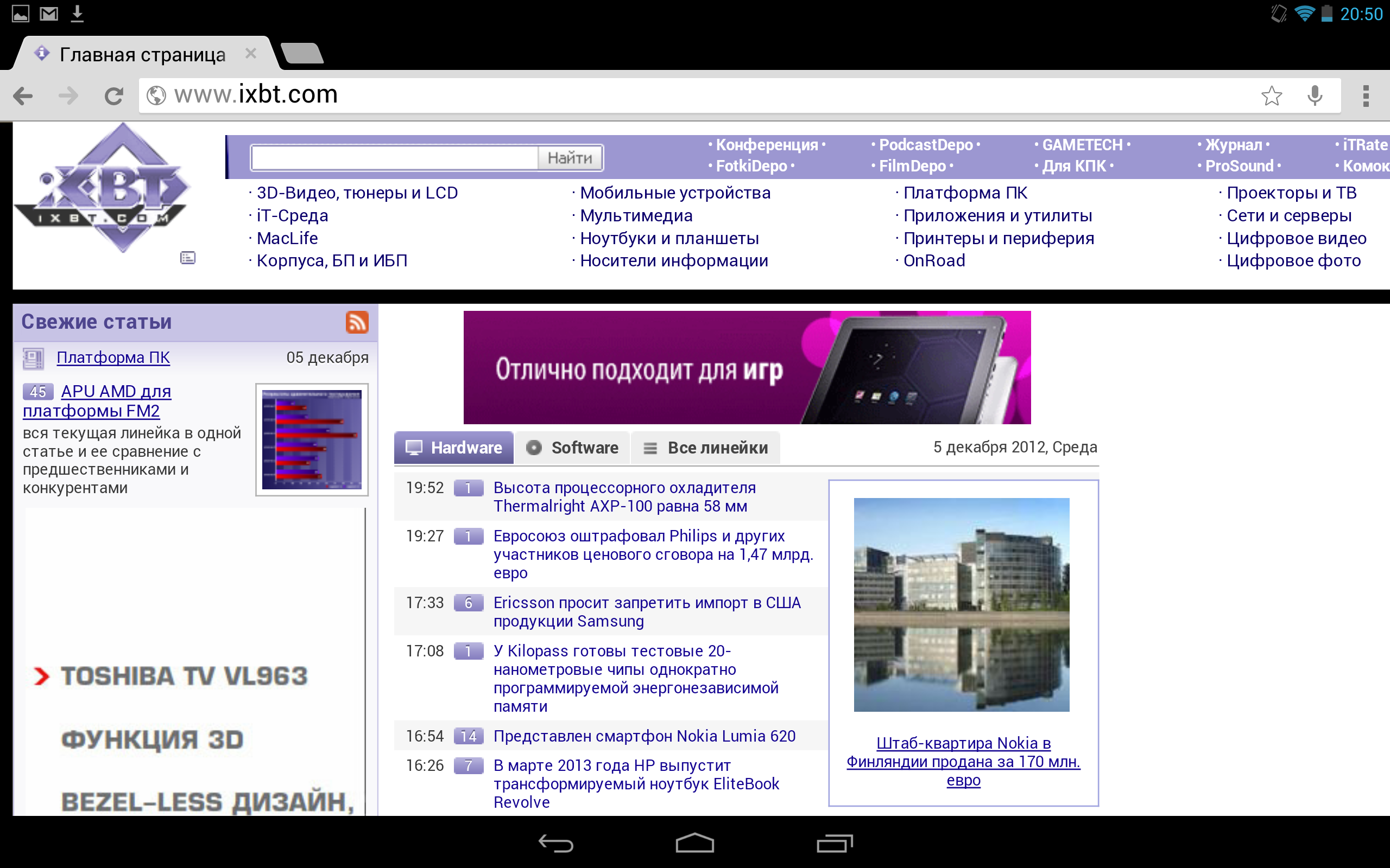 Впрочем, главной интригой было, конечно, отображение 3D-игр и вообще их работа на этом планшете. Об этом стоит сказать отдельно.