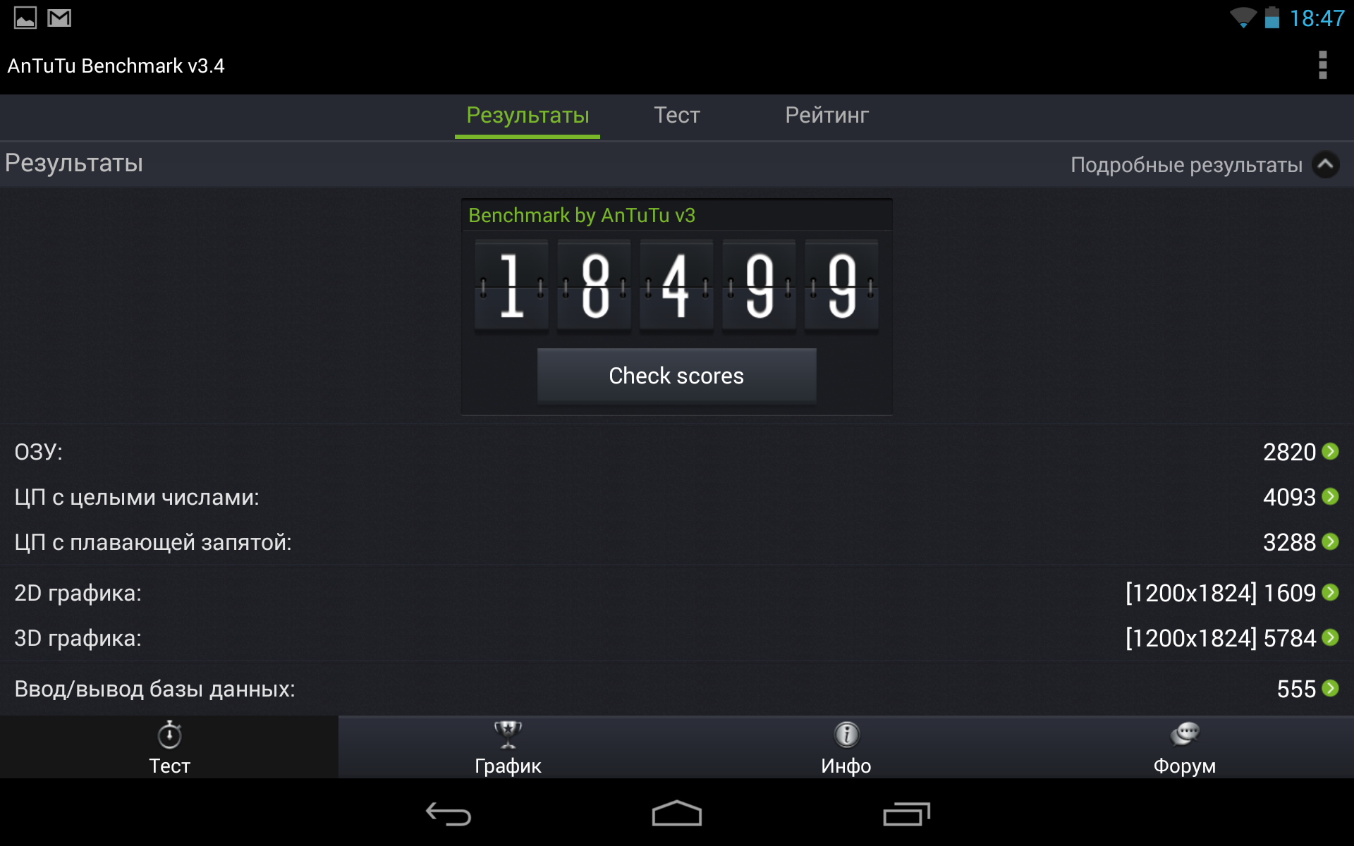 Перейдем к комплексным Android-бенчмаркам: Quadrant Advanced Edition и AnTuTu Benchmark.