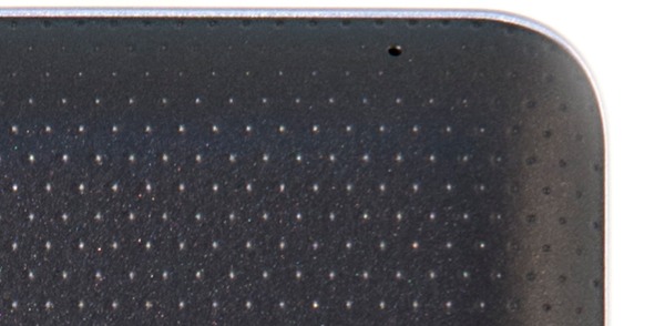 Фронтальная панель — традиционно минималистичная: на ней нет никаких аппаратных кнопок и дизайнерских элементов. Тыловая сторона устройства выполнена из черного пластика со множеством мелких дырочек.