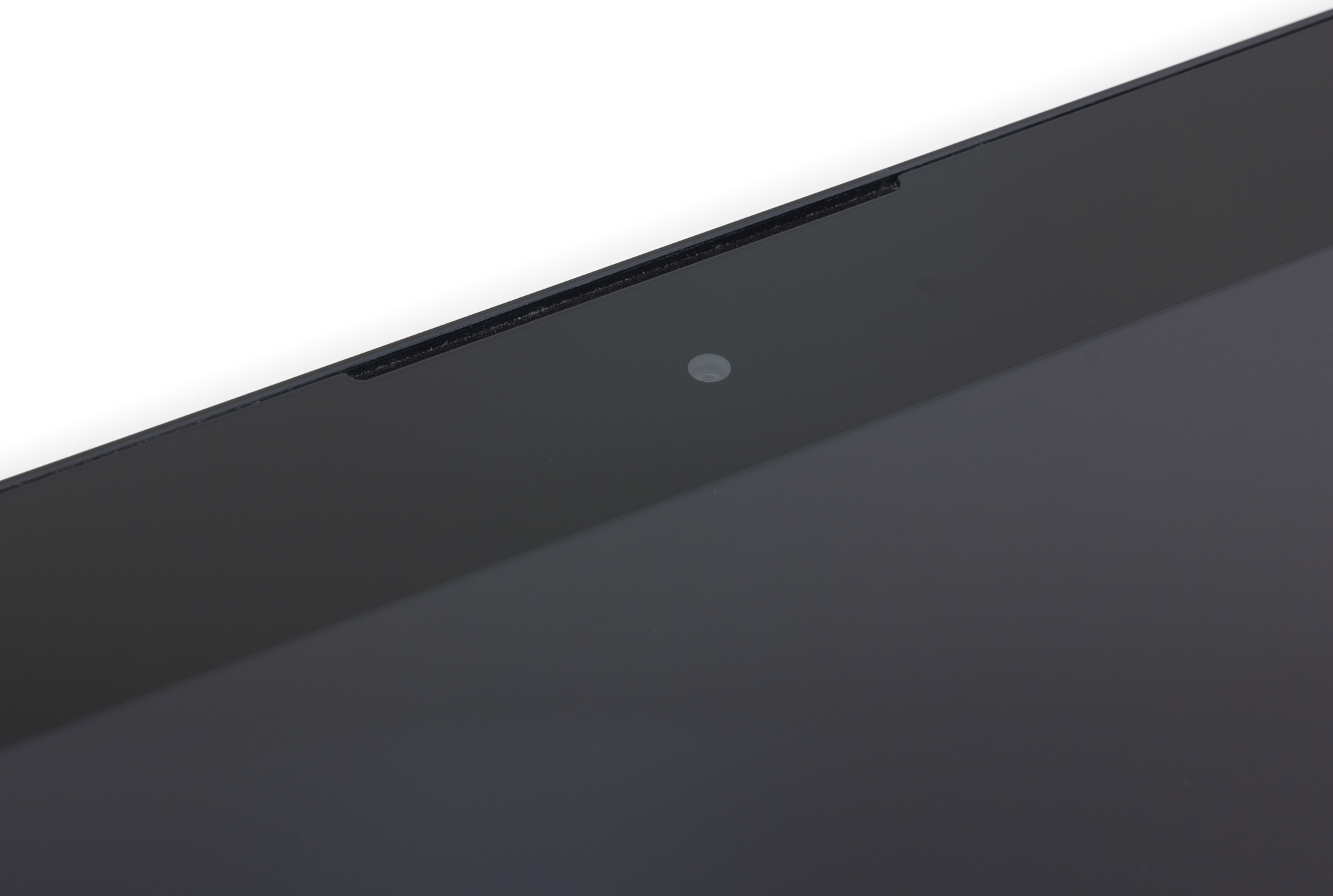 Лицевая поверхность экрана выполнена в виде стеклянной пластины с зеркально-гладкой поверхностью, устойчивой к появлению царапин. Судя по яркости отраженных объектов, антибликовые свойства экрана не хуже, чем у Google Nexus 7 (2013) (далее просто Nexus 7). Для наглядности приведем фотографию, на которой в выключенных экранах обоих планшетов отражается белая поверхность (Nexus 9 — слева, далее их можно различать по размеру, так как экран у него больше, и на всех следующих сравнительных фотографиях тестируемый планшет расположен ниже Nexus 7):
