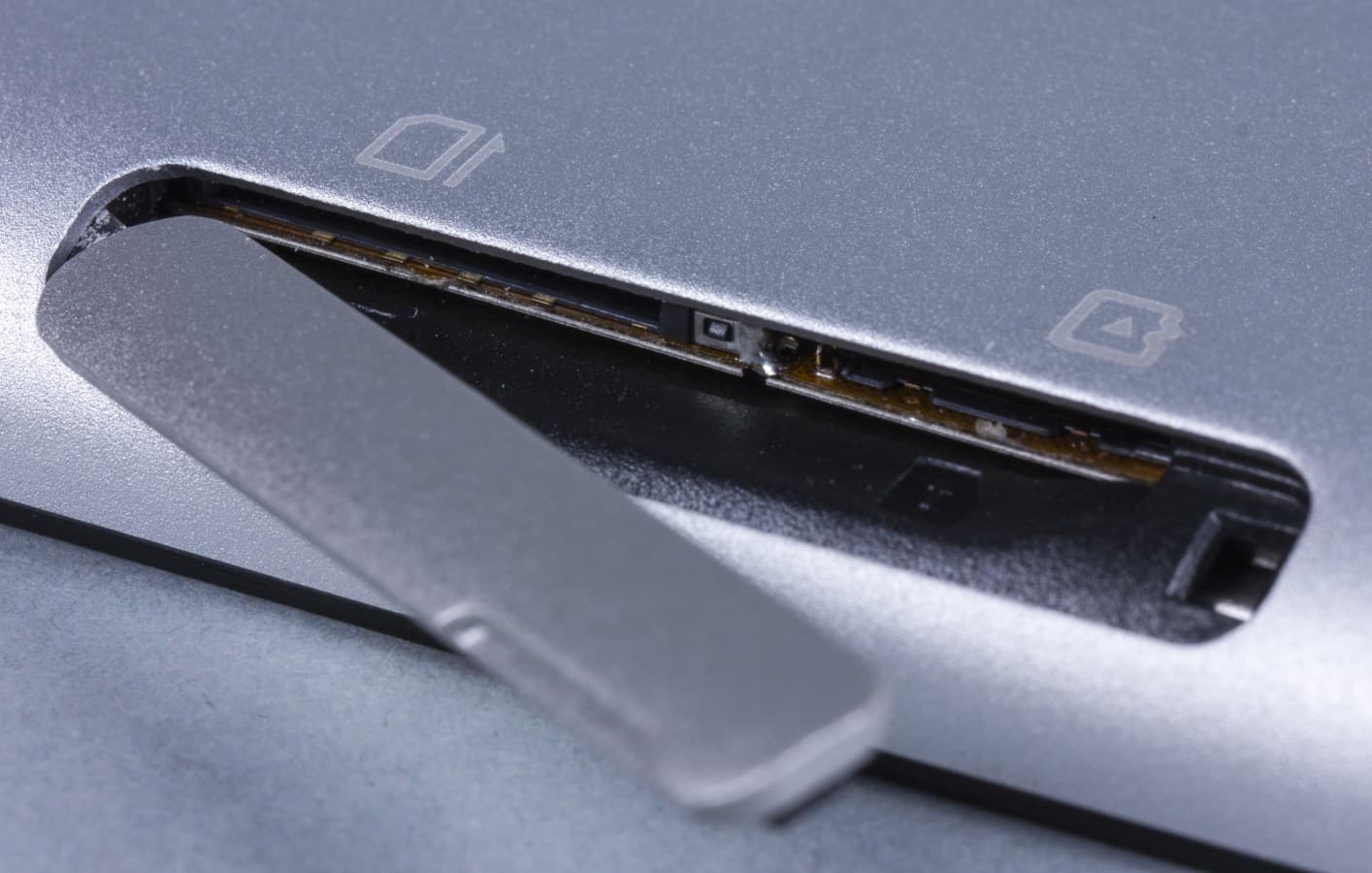 За крышкой на задней панели установлены разъемы Mini-SIM и microSD. Сама крышка закрывается неплотно и прогибается при малейшем нажатии.