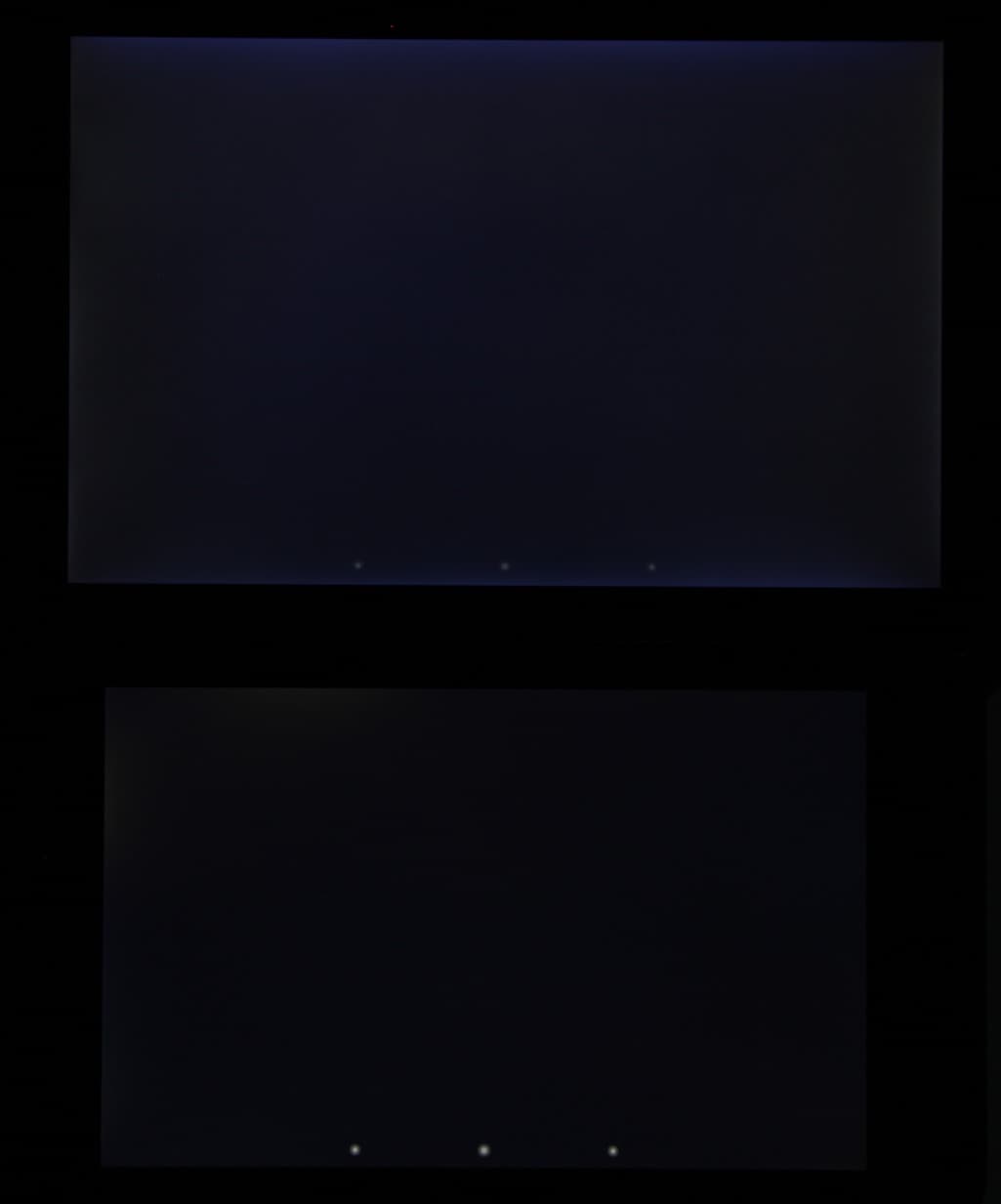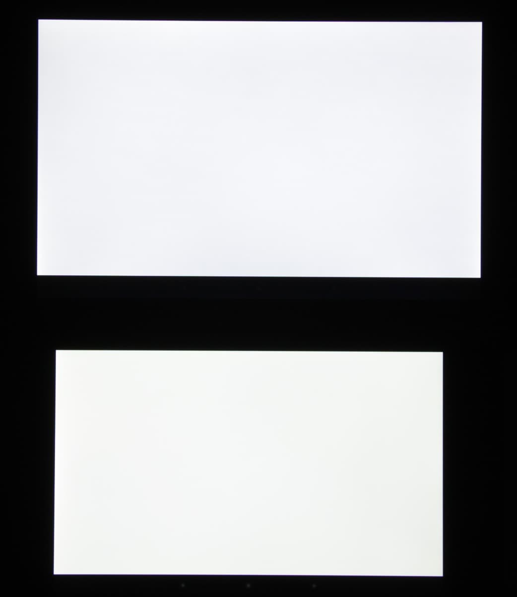 При перпендикулярном взгляде равномерность черного поля плохая, так как по краям наблюдается сильная засветка: