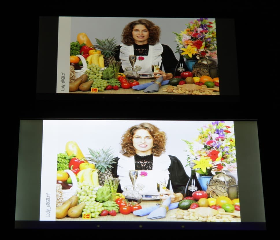 Данный прием позволяет увеличить яркость экрана при тех же затратах энергии на подсветку. В итоге цвета изображений — рисунков, фотографий и фильмов, — ориентированных на пространство sRGB (а таких подавляющее большинство), имеют уменьшенную насыщенность. Баланса оттенков на шкале серого как такового нет вообще — цветовая температура выше стандартных 6500 К и сильно меняется от оттенка к оттенку:
