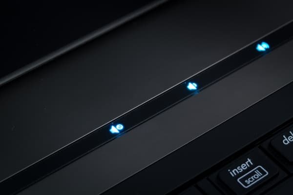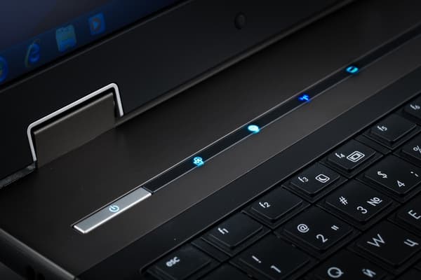 Основные системные индикаторы в Elitebook 8740w расположены на передней грани ноутбука и смотрят вперед. При работе индикаторы видно (хотя и приходится смотреть на них под острым углом).