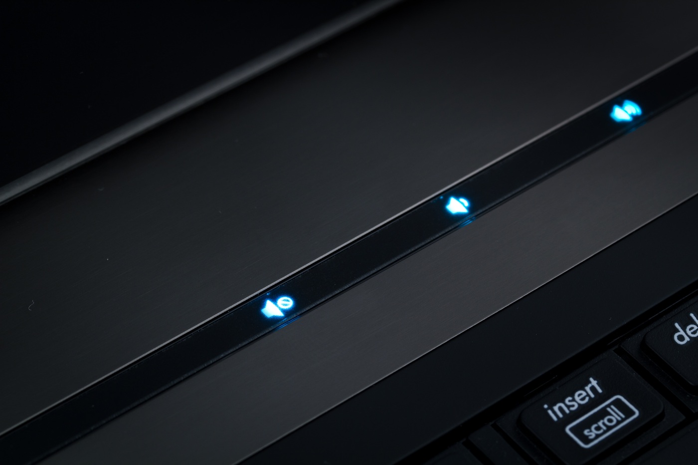Дополнительные клавиши, как и в модели 8440р, расположены над клавиатурой, в черной пластмассовой вставке. Сенсорные клавиши выполнены в виде иконок, подсвечивающихся ярко-голубым.