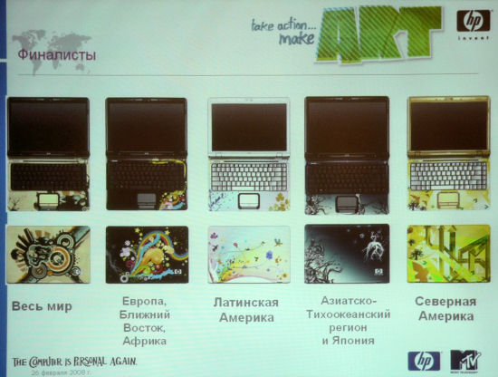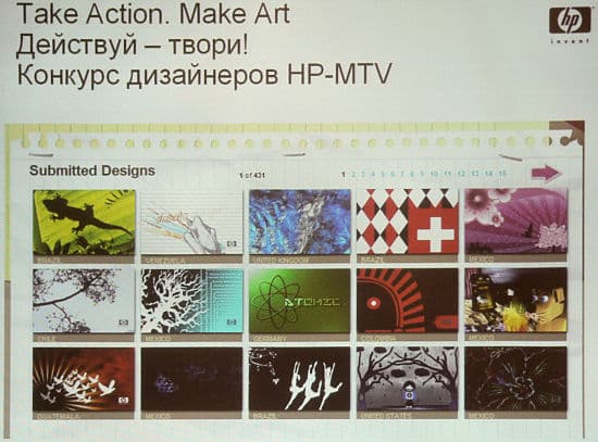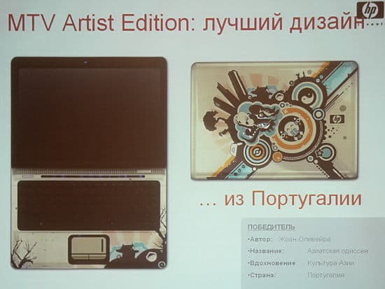 В развитие этой технологии и с целью привлечения молодежной аудитории, НР совместно с МТВ объявила конкурс на лучший дизайн ноутбука по всему миру. В конкурсе приняло участие более 8 тысяч дизайнеров.