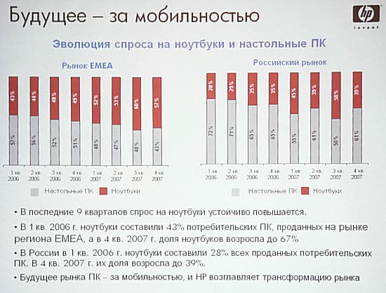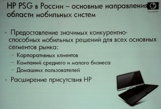 Формально презентация была посвящена анонсу новых моделей ноутбуков домашних серий НР, представители компании также использовали повод, чтобы дать более общую картину деятельности отделения персональных систем компании на российском рынке.