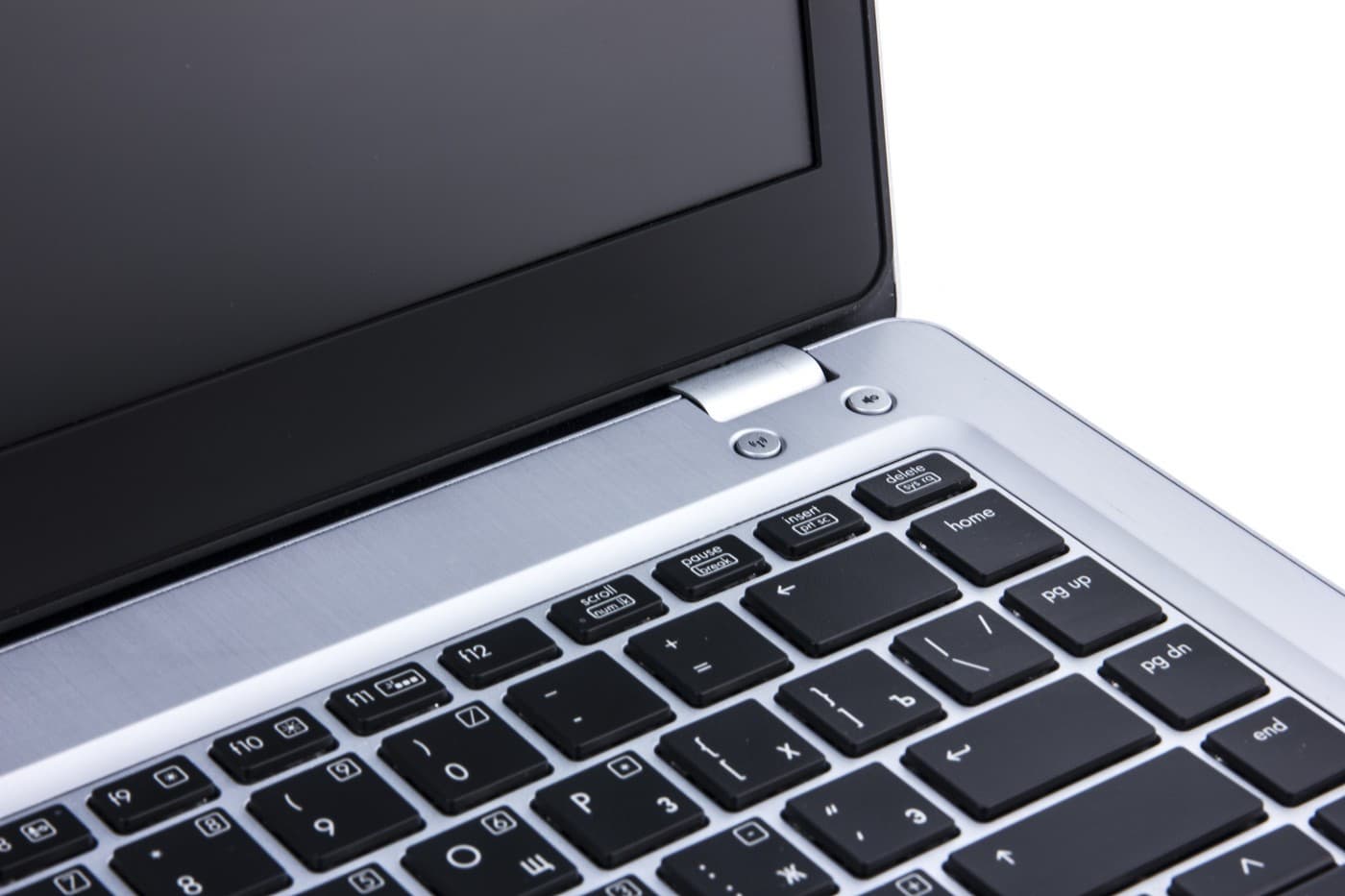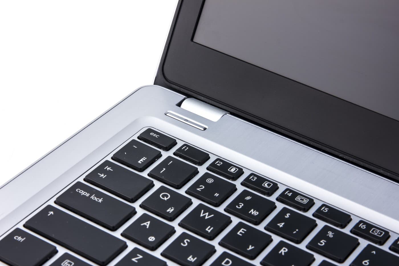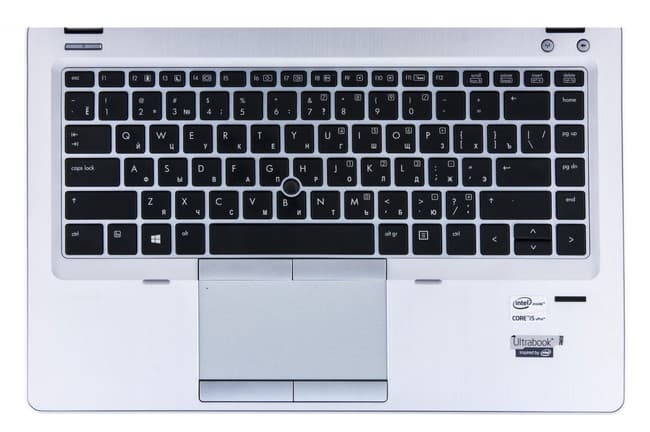 Кнопка питания в Elitebook Folio 9470m расположена в левой части над клавиатурой. Она узкая и длинная, утоплена в корпус.