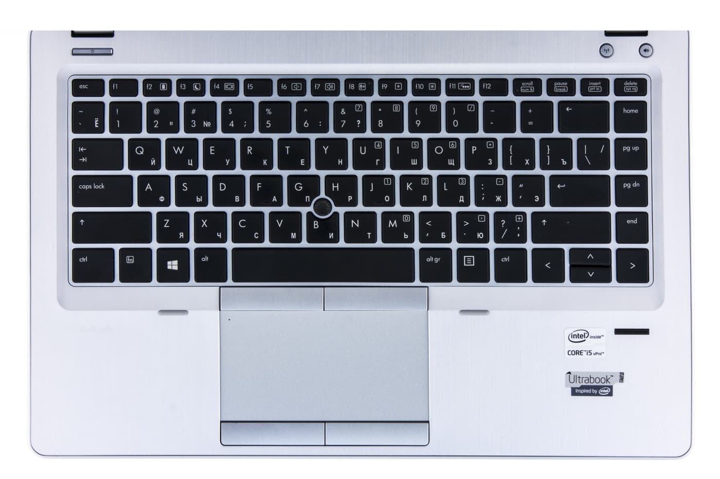 У Elitebook Folio 9470m также есть устройство позиционирования, называемое в народе… впрочем, неважно. Это пенек в клавиатуре, отклонением которого можно управлять курсором. Основное достоинство — он расположен внутри клавиатуры, т. е. им удобнее пользоваться при печати — не надо снимать руку с клавиш. В Elitebook Folio 9470m работать с ним очень удобно: срабатывает четко, курсор перемещается быстро, промахи минимальны.