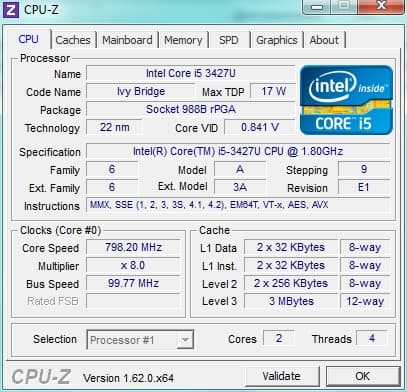 | Процессор | Mobile DualCore Intel Core i5-3427U, 2600 МГц (26×100) |