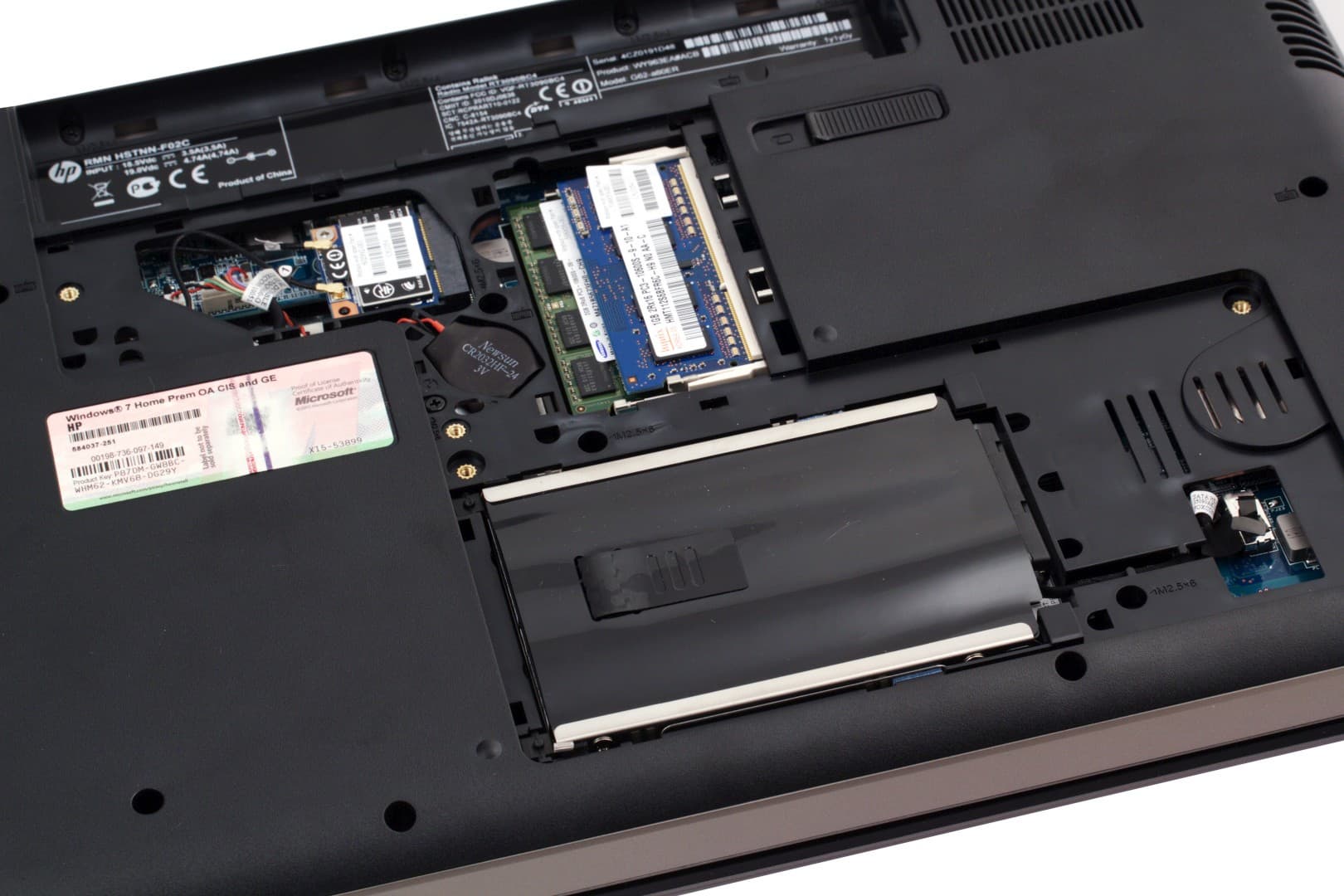За двумя крышками скрывается винчестер, два слота для оперативной памяти и модуль беспроводной сети.