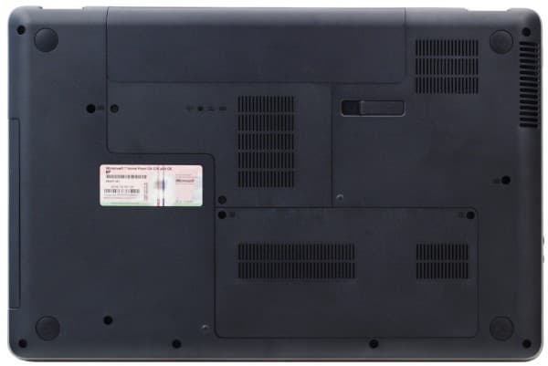 Дно ноутбука плоское, основные вентиляционные решетки располагаются по центру, поэтому его вполне можно класть на колени, позаботившись лишь о том, чтобы не была перекрыта решетка в верхнем углу, где располагается основной вентилятор.