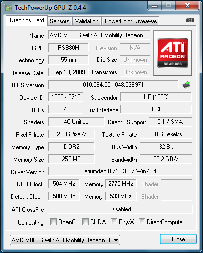 Интегрированное видеоядро HD4225 нам уже хорошо знакомо, работает в данном случае на штатной частоте, в качестве видеопамяти используется буфер в оперативной памяти.
