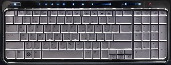 Кстати, тачпад в HDX 18 можно легко отключить кнопкой, которая находится над ним — это традиционная особенность всех ноутбуков HP. Тачпад лучше отключать, когда к компьтеру подключена мышка, чтобы избежать скачков курсора при печати. Тем более, что включить его обратно — дело секунды. Рядом с кнопкой есть диод, который показывает, включен тачпад или нет (светится синим или оранжевым светом), диод яркий и иногда отвлекает.