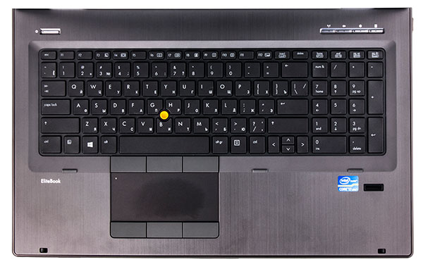 В ноутбуке HP EliteBook 8770w используется классический тачпад с тремя кнопками. Причем имеются кнопки как сверху, та и снизу тачпада (верхние кнопки удобно использовать при работе с трекпоинтом, а нижние — при работе с тачпадом)