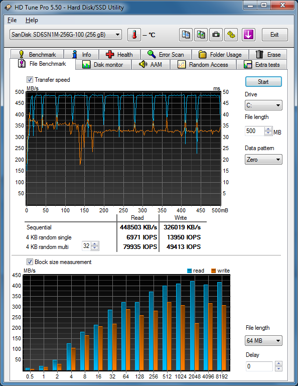 Ну и приведем также результаты тестирования утилиты HD Tune Pro 5.5.
