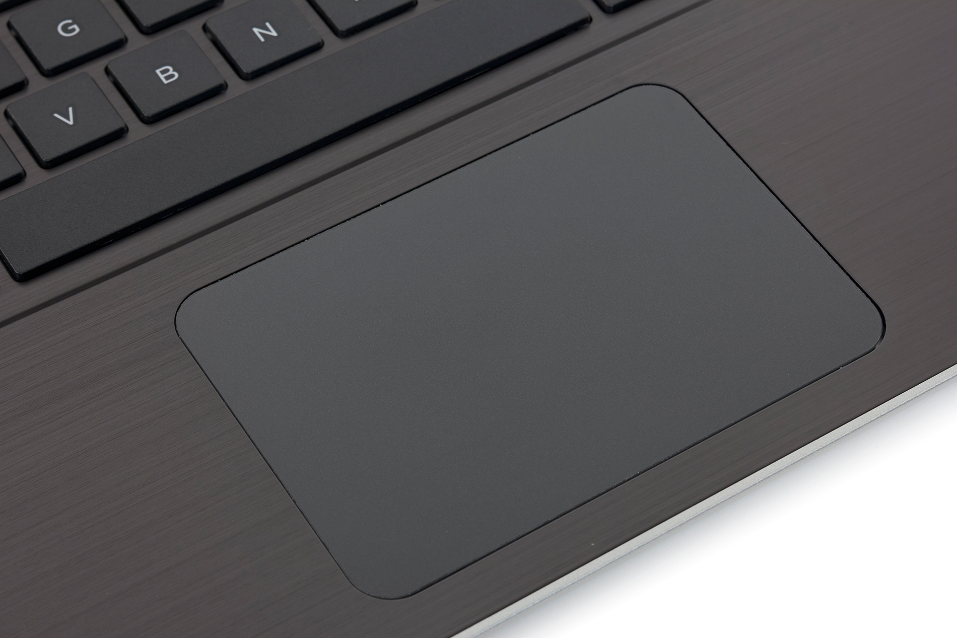 Клавиатура в этом ноутбуке черная, а рабочая поверхность сделана из шлифованного металла и имеет темно-коричневый (шоколадный) цвет. Если точнее, то пластиковую основу рабочей поверхности закрывает тонкий лист шлифованного металла.