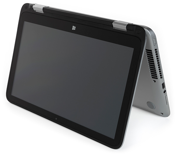 Использовать HP Pavilion 13-a020nr x360 в режиме планшета не очень удобно: для планшета это устройство получается толстым, тяжелым и громоздким, хотя формально все функции планшета у HP Pavilion 13-a020nr x360 есть, Так, имеется автоповорот экрана, кнопка Windows, а также, естественно, сенсорный ввод, однако в руках планшет долго не удержать. В итоге пользоваться удобно либо ноутбуком, либо «шалашиком», когда устройство стоит на столе. Так что возможность трансформации HP Pavilion 13-a020nr x360 в режим планшета — это лишь дополнительная функция, причем режим планшета не является основным для данного устройства.
