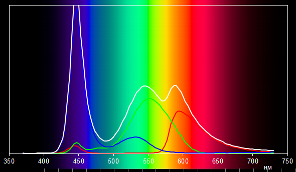 Светофильтры ЖК-матрицы подмешивают компоненты друг к другу. Так, в спектр красного цвета сильно подмешивается зеленый цвет, а в спектр зеленого цвета подмешивается синий. Такая ситуация вполне типична для ЖК-матриц, используемых в ноутбуках, однако бывает и лучше.