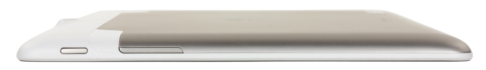 Вверху справа мы видим разъем для наушников. По нему хорошо заметно, насколько скошены у планшета края. Чуть ниже находится слот Micro-USB, применяемый и для передачи данных, и для зарядки, поскольку отдельного гнезда зарядного устройства у планшета нет.