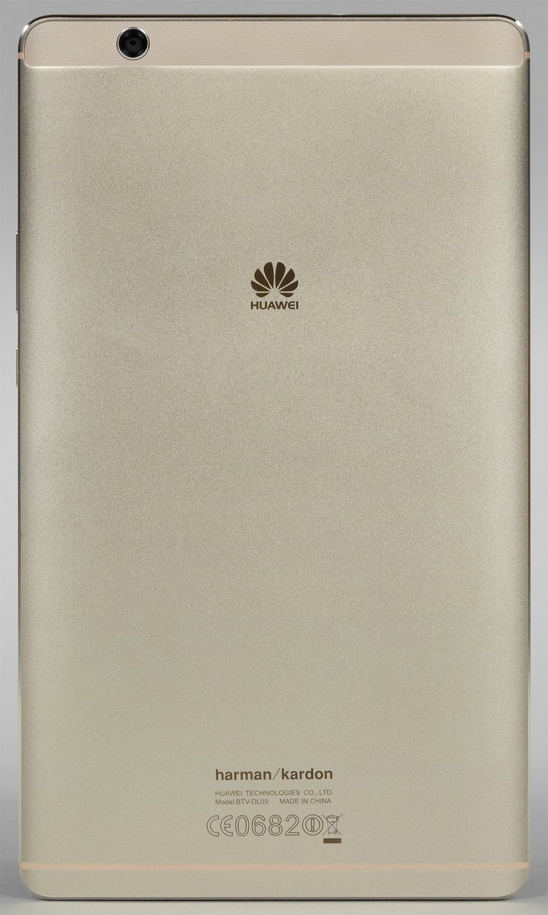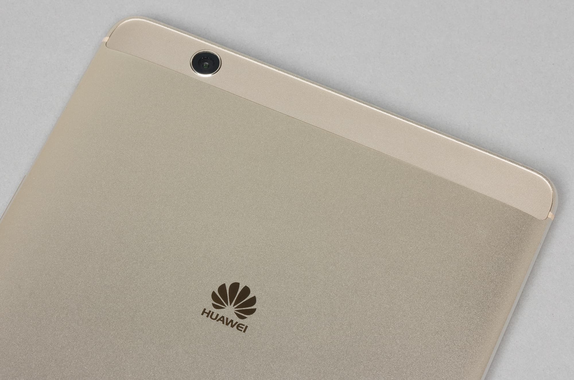 Корпус Huawei MediaPad M3 полностью выполнен из металла, тут нет пластиковых торцевых элементов, стекло склеивается с этаким цельным корытцем из алюминия, полностью накрывающим внутреннее содержимое. В металле имеется лишь одна небольшая пластиковая вставка — плоская панелька в верхней части на тыльной стороне корпуса, под которой скрываются антенны и модуль камеры, сама панель имеет чуть шероховатую текстуру с едва заметным рисунком в виде тонких продольных полос. Выглядит это стильно, гораздо интереснее, чем прозрачная блестящая полоска у премиального Huawei P9 Plus, например.