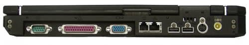 На задней стенке корпуса слева направо: порты COM, LPT, выход VGA. Дальше — модемный и сетевой разъемы, два порта USB 1.1 (присоединюсь к широко распространенному в узких кругах мнению — хотя бы один порт USB должен быть на боковой стенке, т.к. пользоваться портами, расположенными сзади, неудобно), выход S-Video и разъем для сетевого питания.