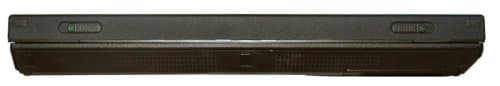 Теперь, так сказать, зайдем снизу. В самом верху — разъем для подключения дока, ниже и по центру — крышка, прикрывающая отсек для карт Mini PCI (внутрь заботливо выведены антенны для работы с беспроводными интерфейсами), в правом нижнем углу — крышка отсека памяти (два слота под SODIMM), в левом нижнем — стандартная батарея.