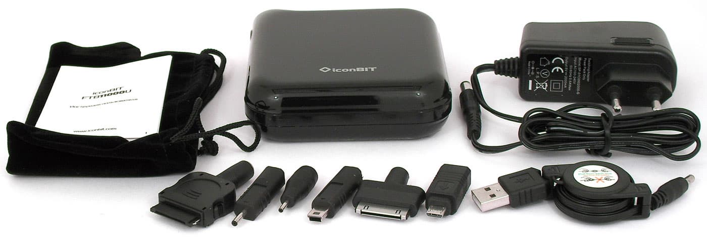 Портативный источник питания iconBIT FTB11000U комплектуется неопреновым бархатистым чехлом, адаптером питания для подзарядки, и набором переходников для подключения к различным типам устройств.