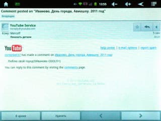 Встроенный браузер быстр в работе, сложное форматирование страниц отображает корректно, скрипты обрабатывает без ошибок. Flash-видео на веб-страницах воспроизводится без задержек, хотя поверх видео всё-таки отображается знакомое многим владельцам Android-устройств предупреждение «Это видео не адаптировано для мобильных устройств».