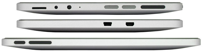Профиль планшета напоминает профиль… Впрочем, читатель наверняка понял, о профиле какого устройства речь. Ниже имеются фотографии боковых граней планшета: правой, левой и верхней. На них расположены следующие порты и органы управления: