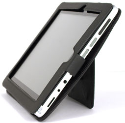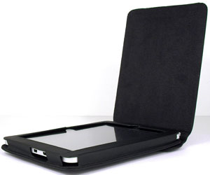 Откидывающаяся крышка, прикрывающая экран, фиксируется невидимыми магнитами. Таким образом, можно не опасаться, что она произвольно откроется под своим весом — для её открытия требуется приложить пусть малое, но усилие. Крышка эта прикреплена к чехлу двумя кнопками — при необходимости её можно легко отстегнуть. «Нашлёпка» с обратной стороны чехла, напоминающая кармашек, — это откидывающаяся подпружиненная ножка-подставка. Благодаря ей планшет, облачённый в чехол, можно разместить на ровной поверхности под углом, удобным для чтения или просмотра видео.