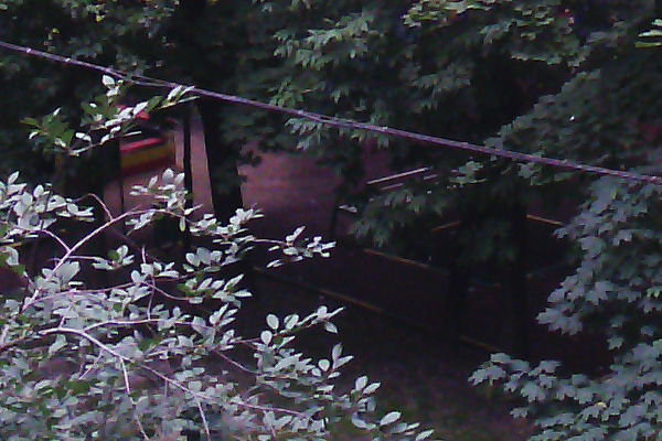 Качество фотографий с тыловой камеры среднее. Страдает цветопередача (картинка слишком темная, оттенки неестественные) и четкость, листья деревьев довольно сильно размыты, многовато артефактов. Вот фрагмент снимка из окна здания днем: